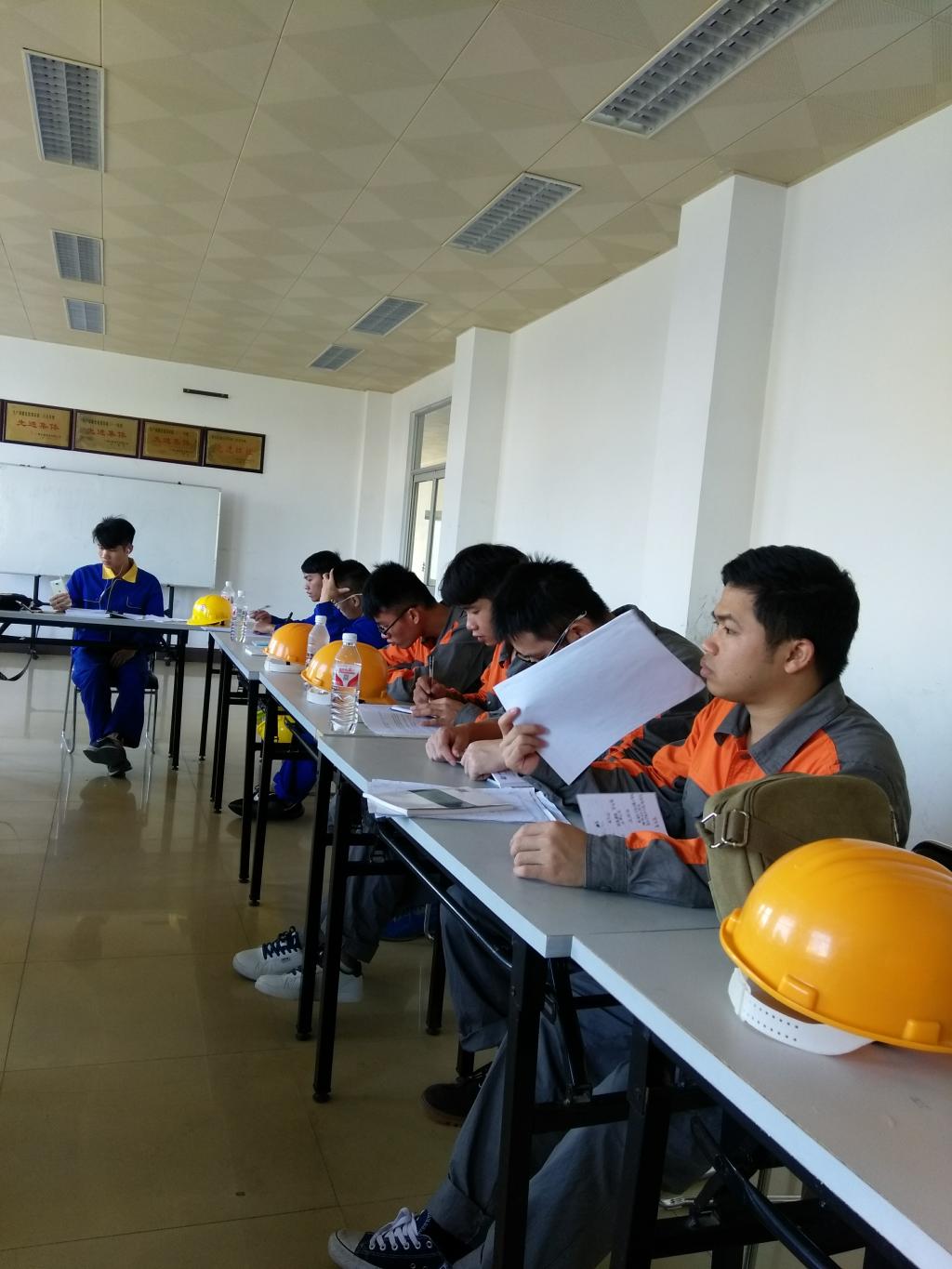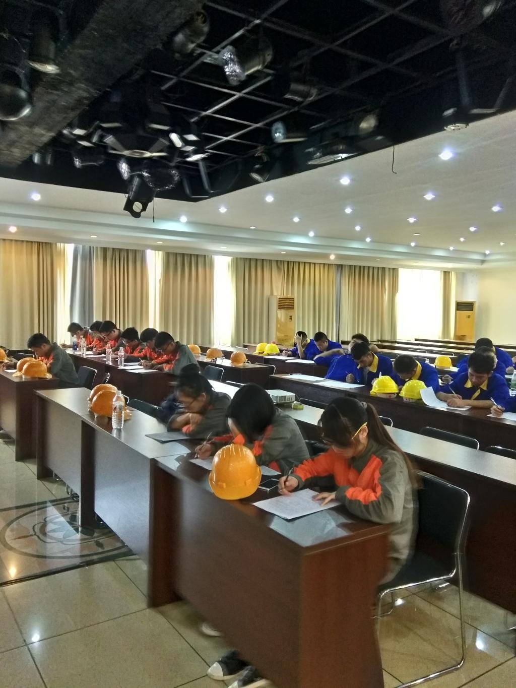广西东油沥青有限公司从事原油炼制,主要产品有汽油、柴油以及道路沥青等,生产过程易释放有毒有害气体,产品易燃易爆。因此,学生入厂实习需经过严格的三级安全教育,并经考试合格后才给予发放入厂证入厂实习。公司黄总结合公司发展史给进行入厂前安全教育课,其次通过化工厂违规操作而发生事故的典型案例给同学们进行讲解。要求同学们进入厂区必须穿劳保服、劳保鞋,并戴上安全帽;听从领导和师傅的安排,不得擅自行动;要求做到:不乱动、不乱摸、不乱跑,如遇突发事件第一时间撤进安全区。最后周泽广老师又再次强调了安全问题,才让同学们跟随师傅进厂。