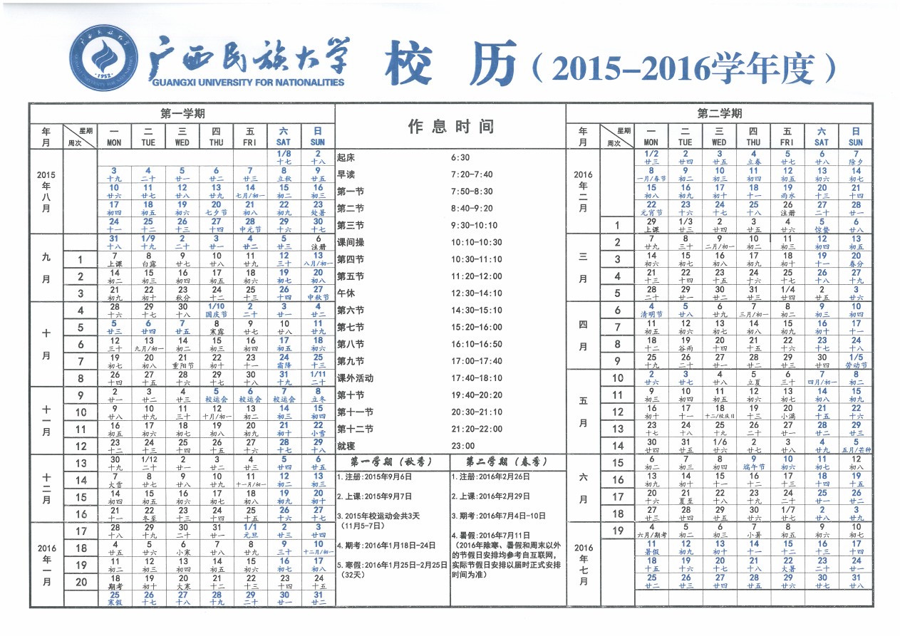 广西民族大学2015-2016学年校历